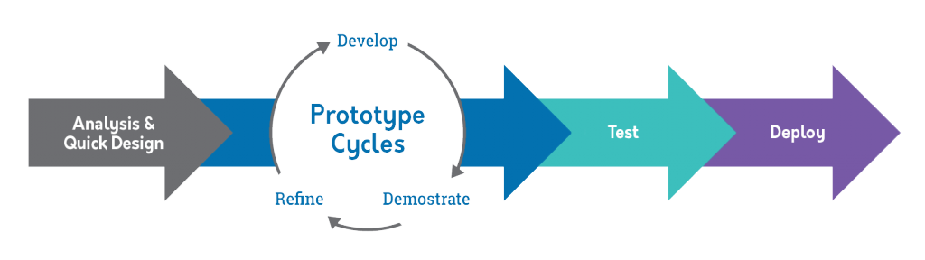 1. 요구 수집 ⇒ 2. 빠른 설계 ⇒ 3. 프로토타입 구축 ⇒ 4. 고객 평가 ⇒ 5. 프로토타입 조정 ⇒ 6. 구현